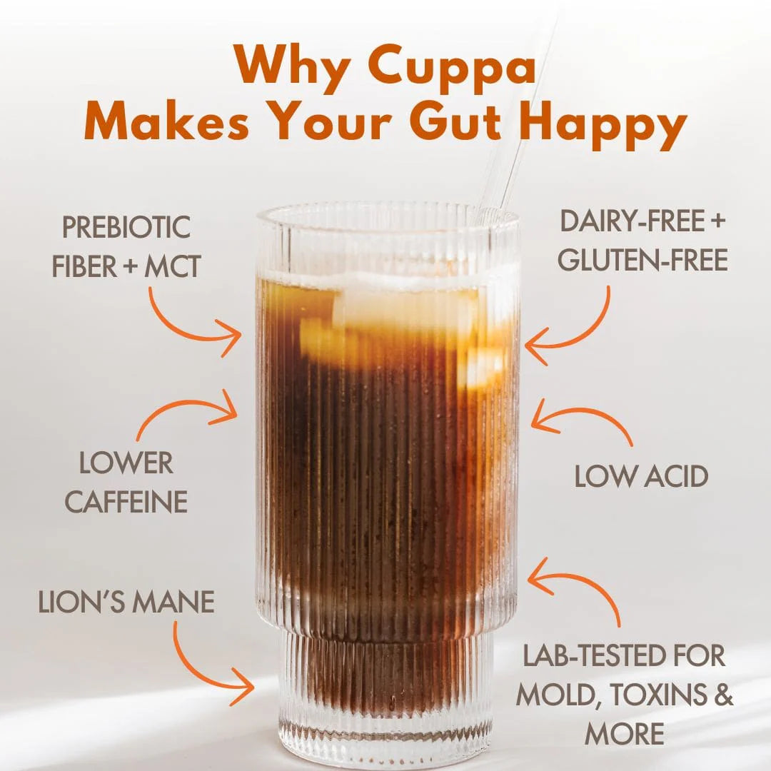 However, unlike your regular cup of coffee, cuppa adds L-Theanine, Ashwagandha and MCT to harness the power of caffeine to work for you, not against you. No jitters or crash, just stable, sustained energy all day. Oh and better sleep and mood too. You're welcome.